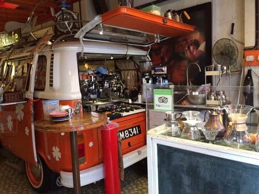 The retro Volkswagen van inside doesn’t just look fascinating—it’s the heart of the café, first born from the owner’s mobile coffee venture Surrounded by records, trophies, and vintage decor, I felt like I’d entered a 1960s time capsule energized by rich, aromatic brews .